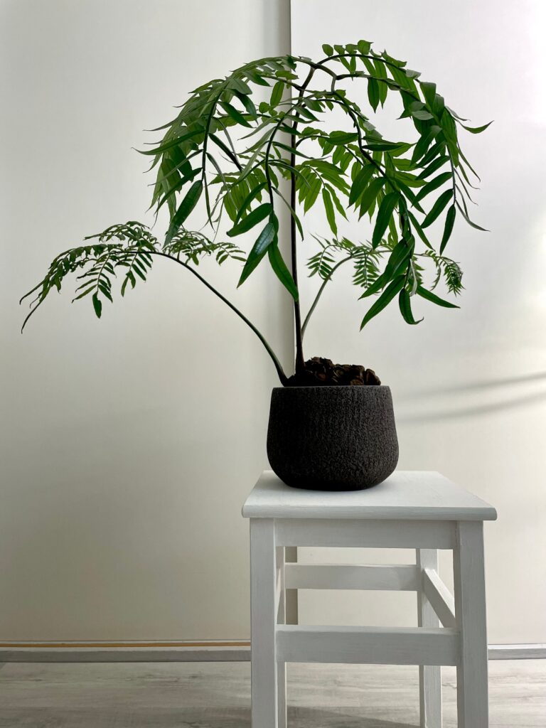 環境:やや暗めの方が葉の寿命が長くなる。新芽はデリケートで風に弱い為、展開するまで無風で管理をする。
