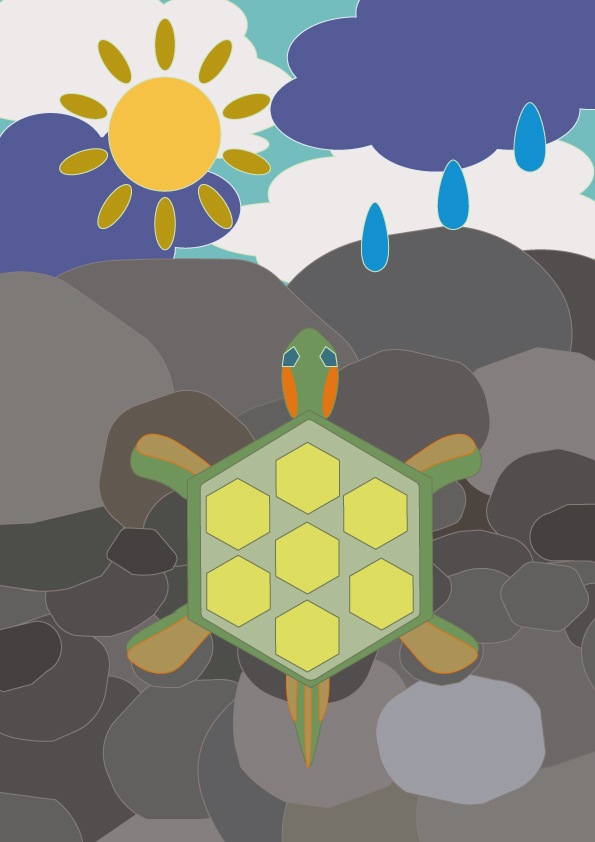 ・ガラパゴス諸島のゾウガメは、甲羅の形や模様が島毎に異なっている。 環境に適した甲羅の形に進化した為である。私はこうした「適応能力を高めたい、柔軟性を保持したい」というメッセージを残す為。