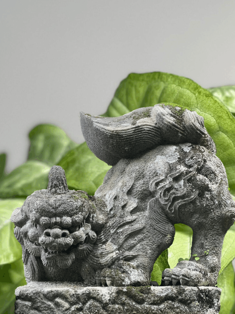 概要:狛犬の画像を切り抜き(オブジェクト選択、スマートオブジェクト変換作業)、自宅の小さな観葉植物を拡大させ、二つの画像を合成した。
