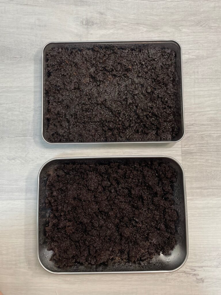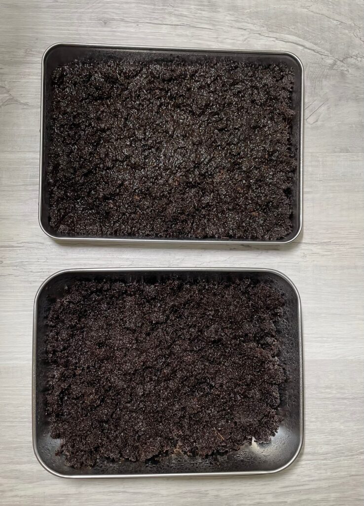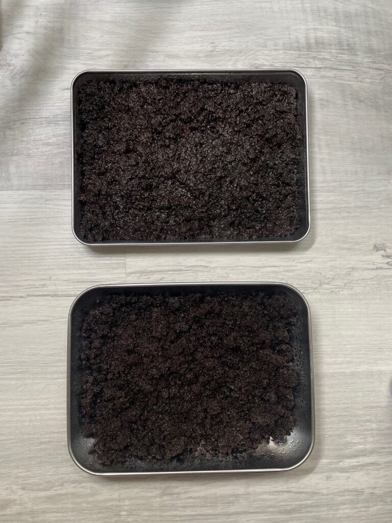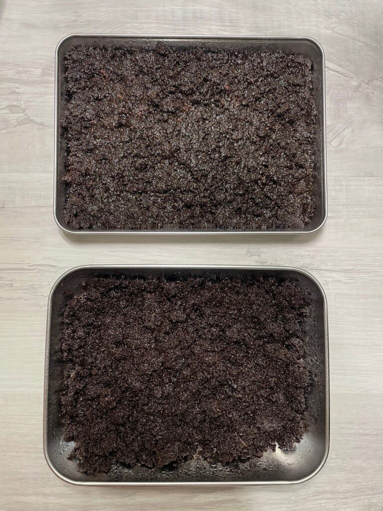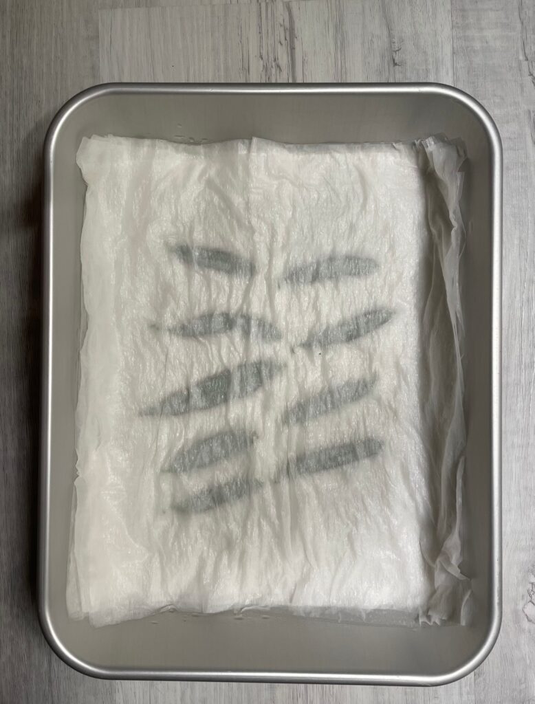 2025/08/28 リュウビンタイの胞子採集過程記録(葉が乾燥して胞子が取りづらい為、湿らせたキッチンペーパーに挟んで2〜3日置く。写真の撮影後、ラップをし、重しを乗せて保管。)