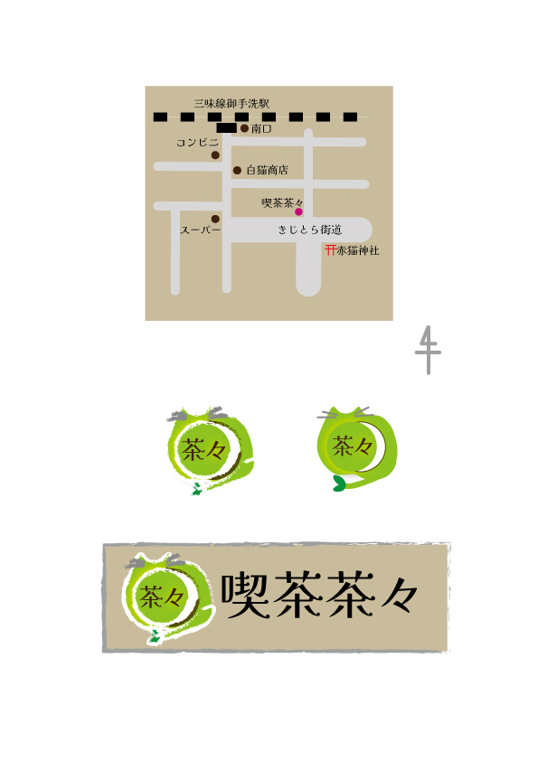 架空の喫茶店「喫茶茶々」があると考え、アクセスマップとロゴマークの制作に至った。