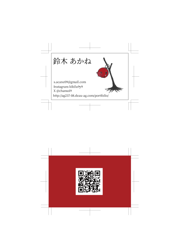 コンセプト:鈴木 あかねということで木の棒についた赤い猫の鈴をモチーフにし、自分のマークを作成。