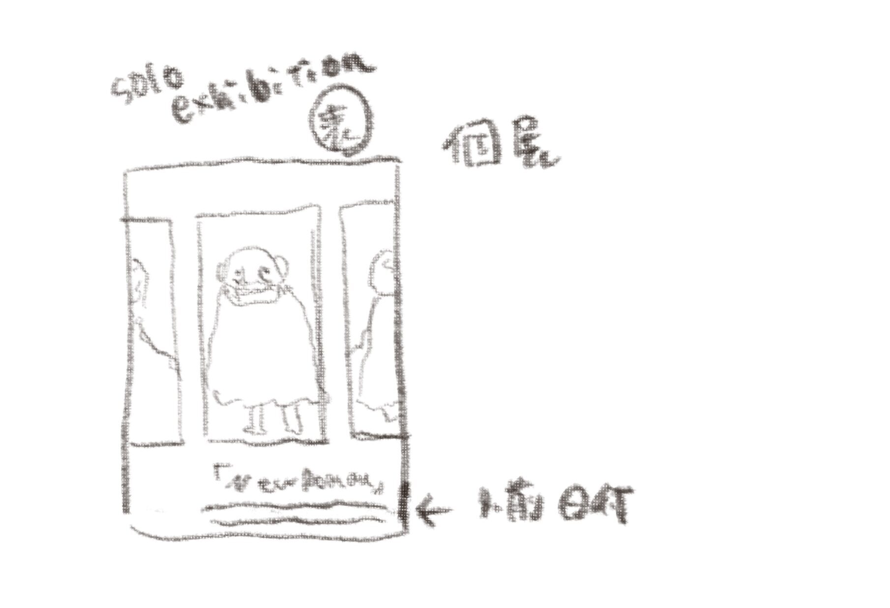 制作物:自分のイラスト・絵画の個展を想定したDM下絵(制作時間:30分、使用ソフト:Procreate)