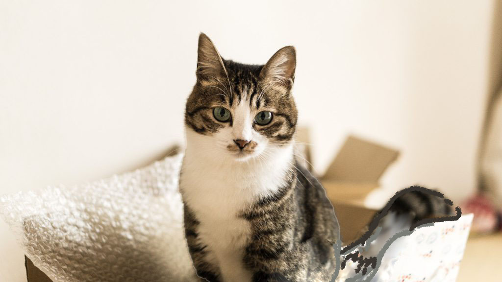 立ち上がっている猫を切り抜き道路の画像に載せる。左右上が元画像。下が編集画像